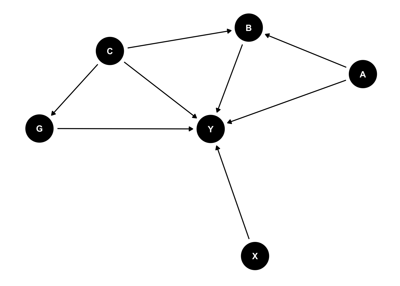 dag = dagify(Y ~ X + B + A + C + G,